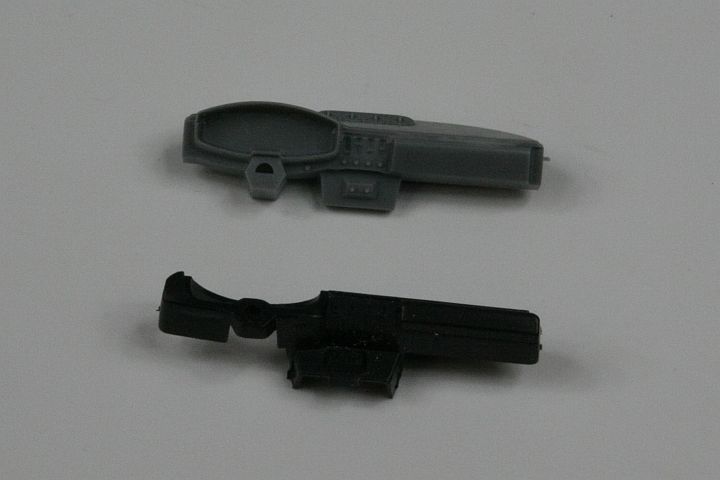 Das obere Cockpit stammt aus einem Fujimi-Bausatz, das untere aus dem Italeri-Bausatz. Für das Fujimi-Cockpit hatte ich ein Fotoätzeil für die Instrumentenumrahmung, welches ich gerne einsetzen wollte.